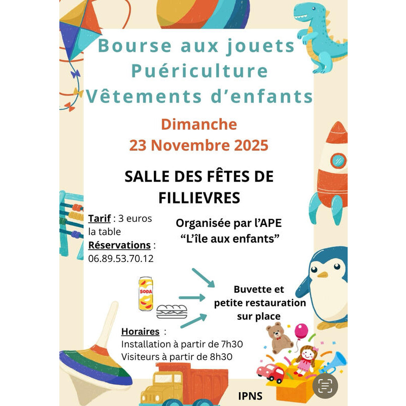 L’association des parents d’élèves du rpi de fillievres organise une bourse aux jouets puériculture et vêtements