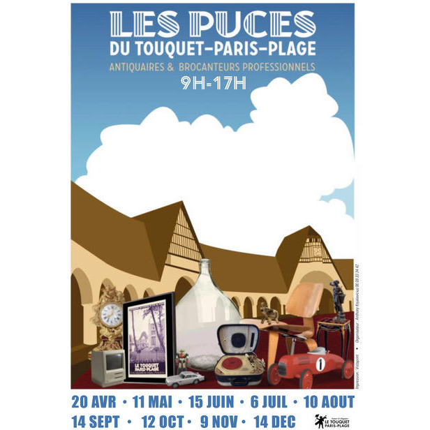 Les puces du touquet est un événement mensuel. Retrouvez brocanteurs, antiquaires et restaurateurs d'arts tous les deuxième dimanche de chaque mois ! 40 marchands vous présentent leurs dernières sélections. Vous trouverez de la brocante, des antiquités, de la collection, de la friperie choisie, du vinyle, du vintage, de l'art, des livres, vieux papiers et d'autres trésors.