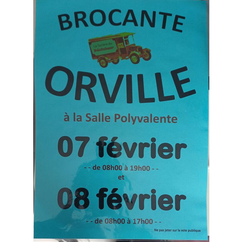 Brocante en salle le samedi 7 février de 8h à 19h et le dimanche 8 février de 8h à 17h.