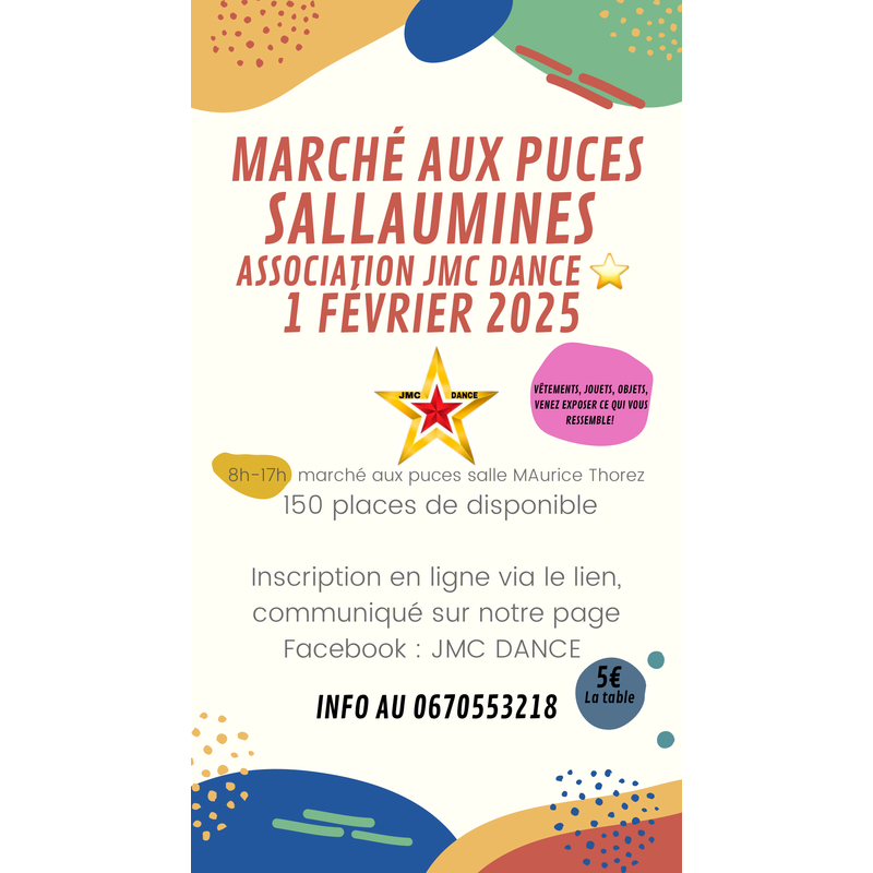 La jmc dance organise un marché au puces couvert le 1er février. N’hésitez pas à venir y faire un tour et faire de bonne affaire.