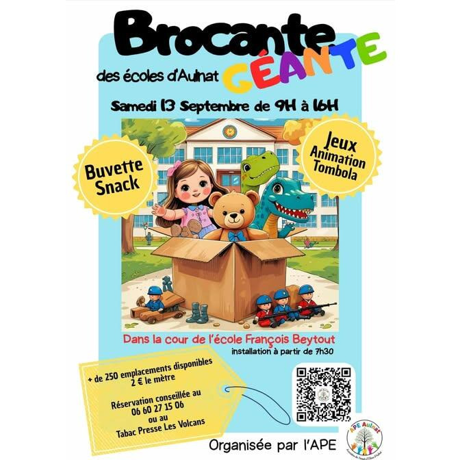 Grande première : la brocante géante des écoles d'aulnat ! Vous aimez chiner, dénicher de bonnes affaires ou tout simplement vous balader, cette première édition promet d'être riche en trouvailles et en convivialité. Et surtout... Vous participez à un projet qui soutient directement les enfants de notre commune. Les bénévoles motivés de l'ape seront là pour vous régaler avec une buvette et un snack. De quoi profiter pleinement de votre journée !