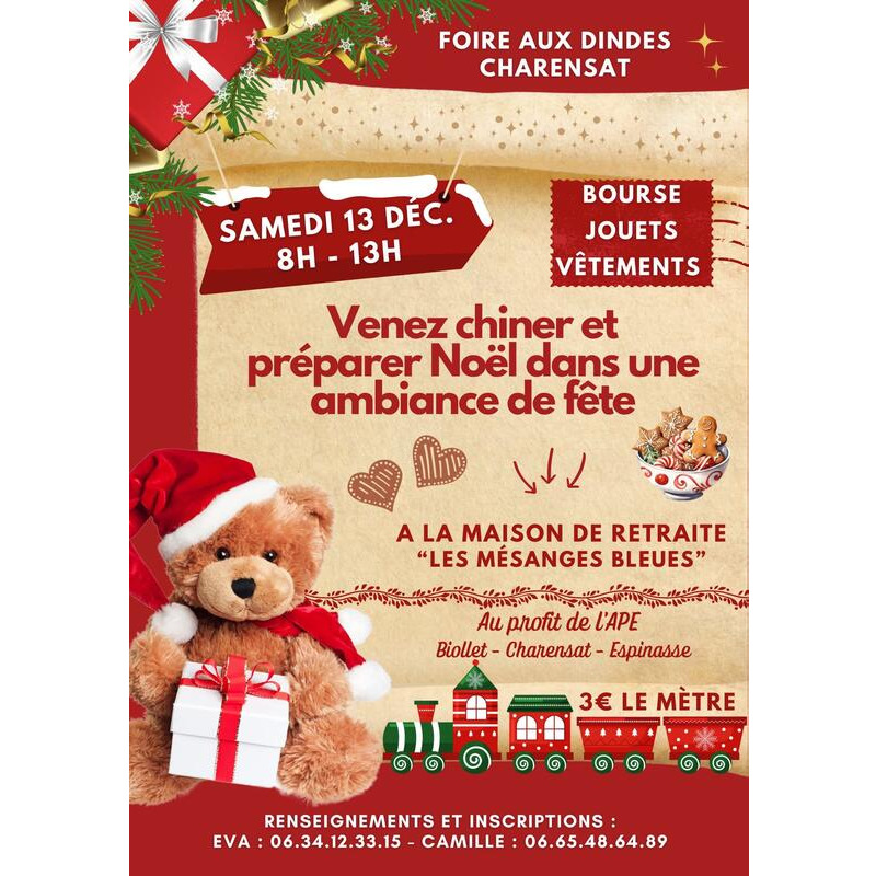 inscrivez-vous à notre bourse aux jouets et vêtements, ouverte de 8h à 13h aux côtés du stand de l’association des mésanges bleues.