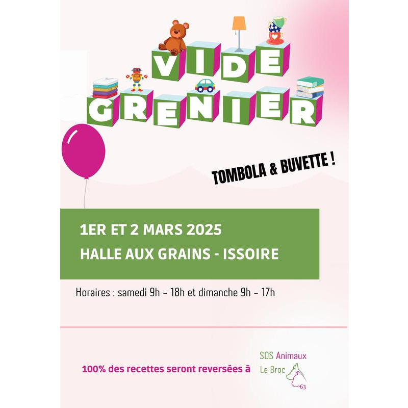 Vide-grenier - issoire les 1er et 2 mars prochain ! Rendez-vous pour le vide-grenier annuel organisé par le refuge au profit de nos animaux.