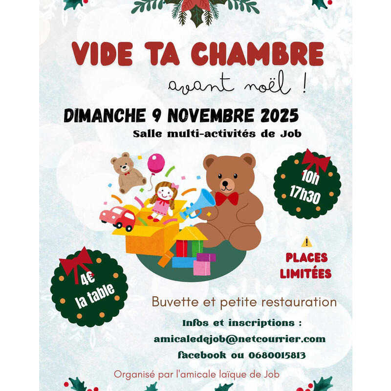 « vide ta chambre avant noël ! » est l’occasion de faire de la place dans les chambres des enfants, dans les salles de jeux ou dans les greniers / garage!