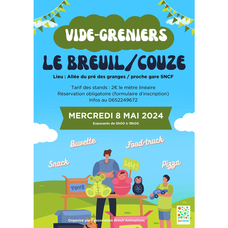 Grand vide grenier brocante dans les rues proches de la gare sncf du breuil-sur-couze.