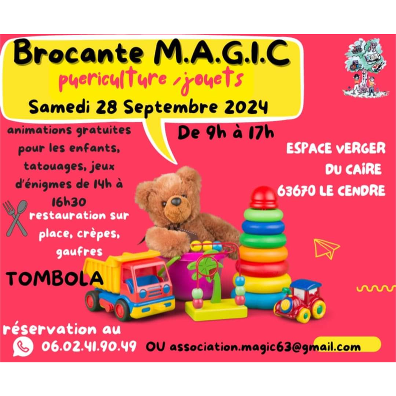 Brocante puériculture, jeux et jouets, vêtements enfants de 9h à 17h à la salle polyvalente du cendre.