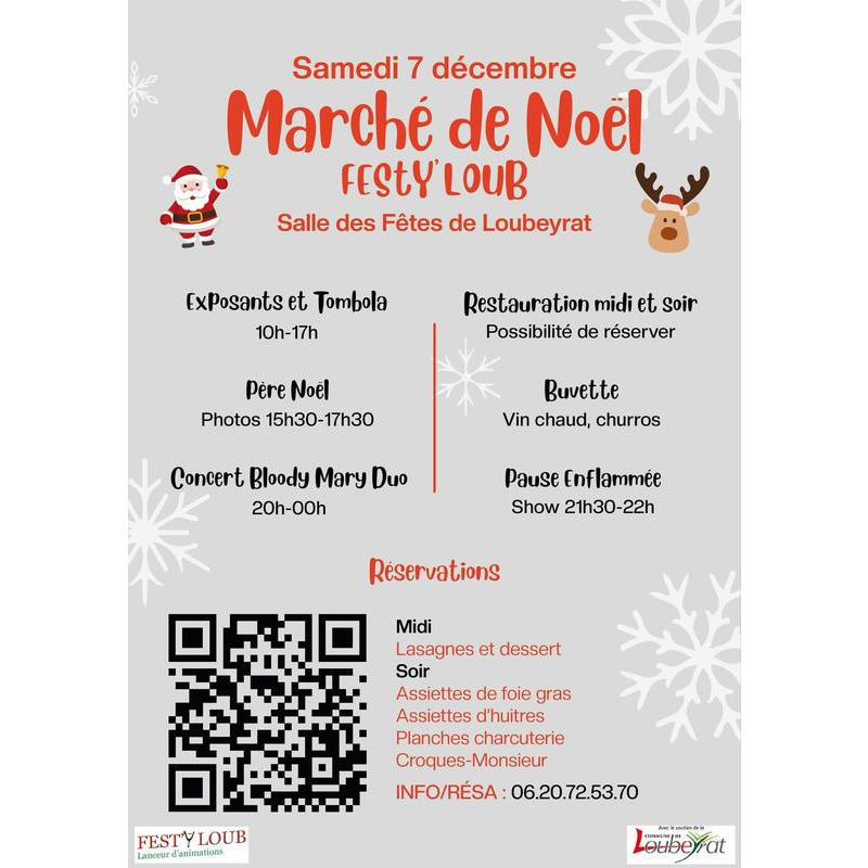 Marché de noël samedi 7 décembre à la salle des fêtes de loubeyrat 63 avec fest'y loub ! Programmation de 10h à minuit :