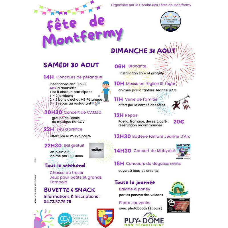 La journée sera rythmée par de nombreuses animations : messe à 10h30, musique et concert (batterie fanfare jeanne d'arc, mobydick), balade à poney, concours de déguisement pour les enfants, chasse au trésor, jeux, tombola ...
