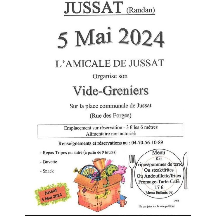 Repas tripes ou autre à partir de 9 heures. Buvette. Snack .