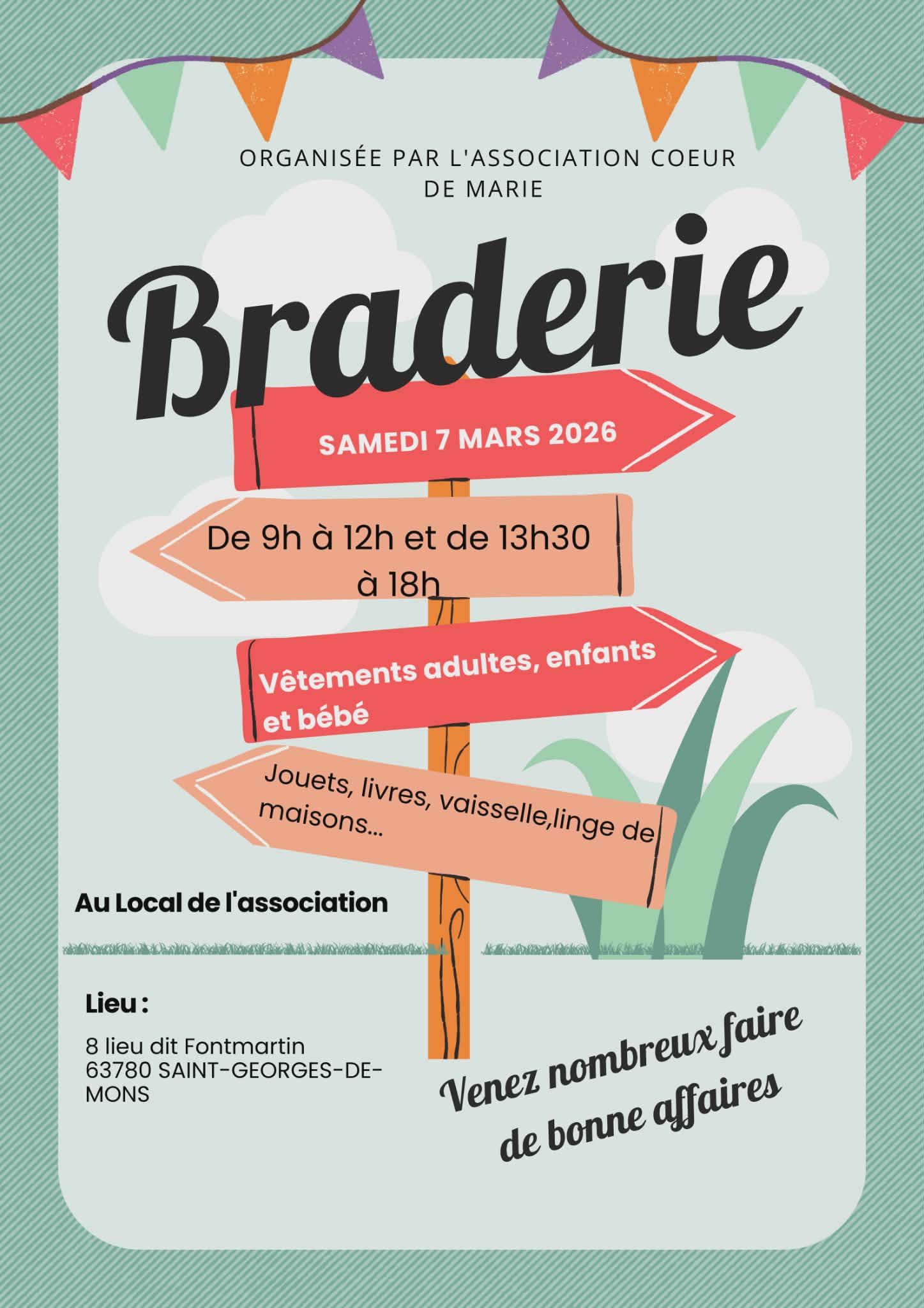 Ouverture du local de l'association Coeur de marie le samedi 7 mars 2026 de 9h à 12h et de 13h30 à 18h