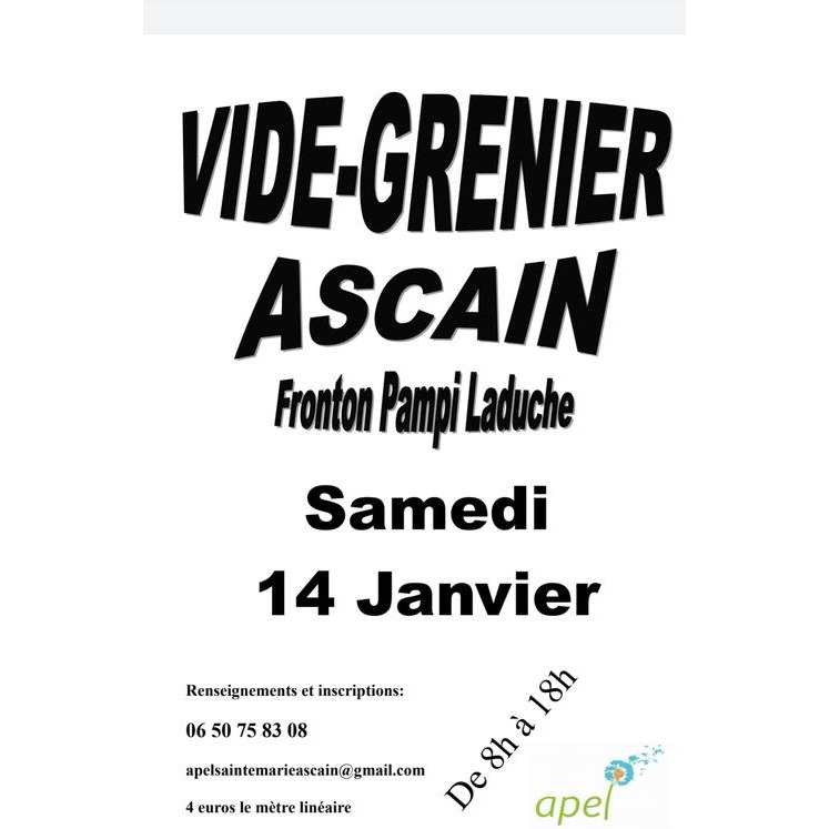 L'apel sainte marie ascain prend en charge l'organisation du vide-grenier mensuel du village !
