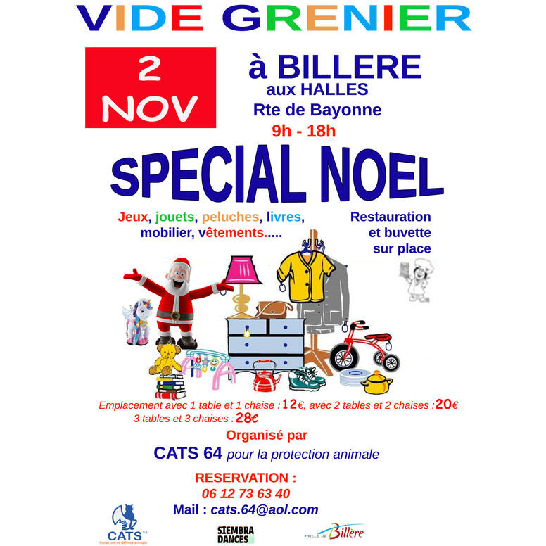 Venez vendre les jouets et tous objets que vous n'utilisez pas et aussi chercher les jouets ou objets pour offrir à noël. Buvette avec de succulents plats du monde, délicieux desserts et boissons chaudes et froides. C'est l'occasion à ne pas rater pour réaliser des supers affaires pour noël. Le succès du vide grenier de noël est incontesté.