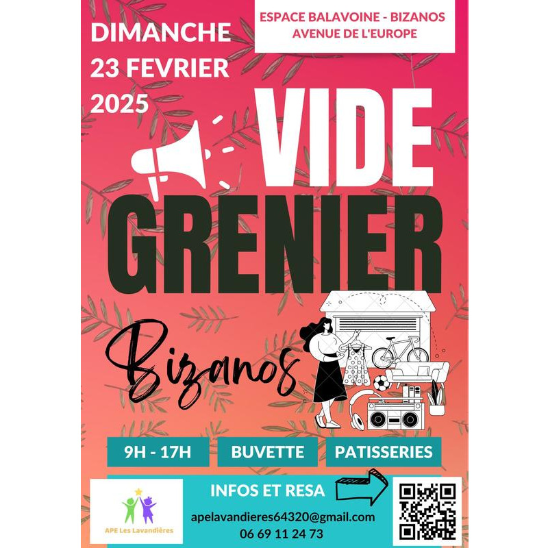 Vide grenier organisé par l'école primaire publique de bizanos; nombreux emplacements intérieurs et extérieurs, accueil chaleureux