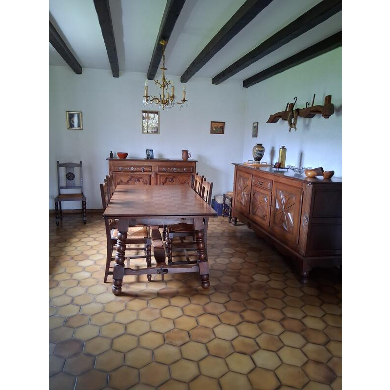 Vente de divers meubles ( buffets et table de salle à manger, table, chaises, argentier, fauteuils, canapé, lits, armoires, coiffeuse, meubles de rangement de cuisine en formica, de salle de bain), luminaires, électroménager, vaisselle, argenterie, linge de maison, livres, jeux, bibelots, table de ping-pong, outillages divers.