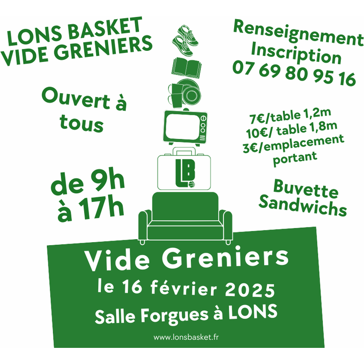 Vide grenier organisé le dimanche 16 février à la salle gérard forgue de lons