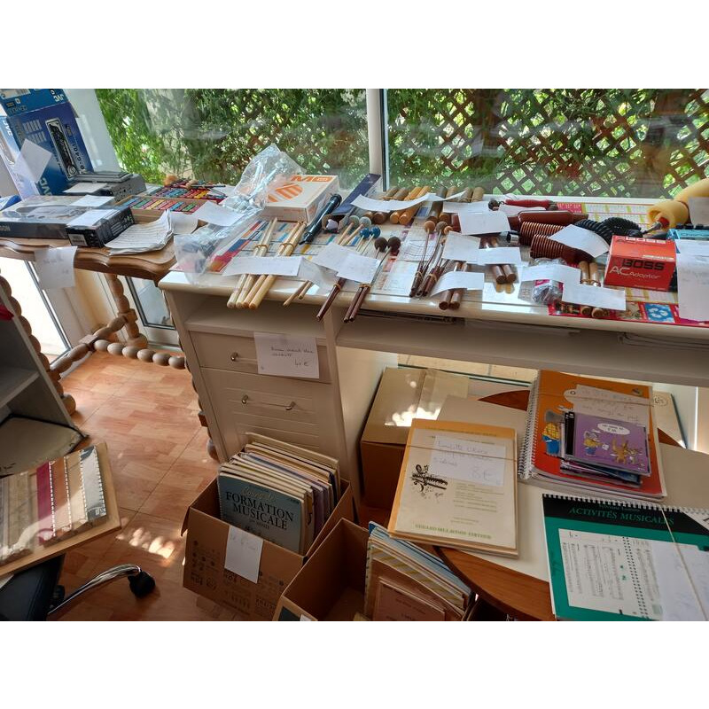 Vaisselle, vêtements, jouets, bicyclette dame, accessoires voitures, instruments de musique, livres divers…