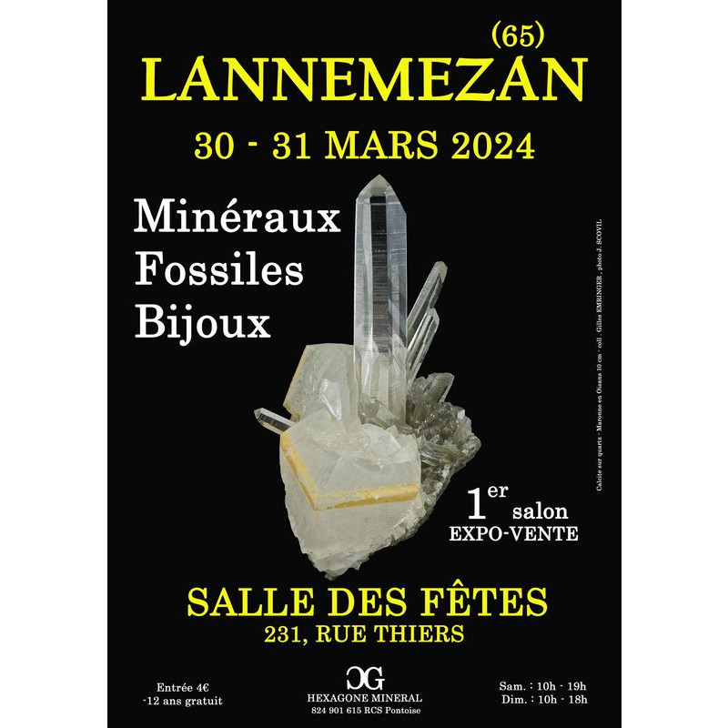 Hexagone mineral vous donne rendez-vous les 30 et 31 mars 2024 pour le 1er salon minéraux fossiles et bijoux de lannemezan (huates-pyrénées). Cet événement se déroulera dans la salle des fêtes, idéalement située au cœur de la ville, rue thiers. Les exposants professionnels ou amateurs participant à ce nouvel événement présenteront au public leurs dernières nouveautés en provenance du monde entier mais aussi de france et d'occitanie. Comme dans tous nos salons, un très large choix de minéraux, fossiles et bijoux sera proposé à la vente pour le plus grand bonheur des petits et des grands. Pour répondre toujours plus aux attentes du public, un service d'expertise gratuite sera aussi proposée par les organisateurs à celles et ceux qui souhaitent faire déterminer leurs découvertes minéralogiques ou paléontologiques. Ce rendez-vous incontournable au pied des pyrénées devrait réunir de très nombreux passionnés de la région. Nous mettons tout en œuvre pour que ce week-end remplisse d'émerveillement les passionnés tout en sensibilisant les néophytes et les plus jeunes !
