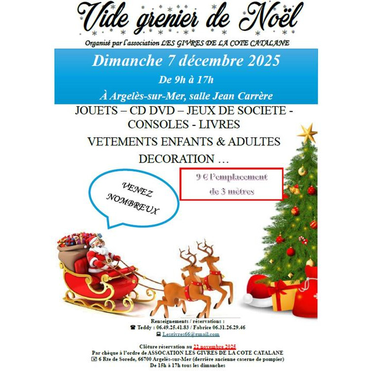Vide grenier de noël : jouets, cd, dvd, jeux de société, consoles, livres, vêtements enfants et adultes, décoration etc.