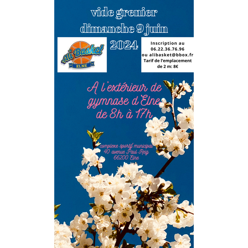 Ali basket vous convie à un vide-grenier en extérieur au complexe sportif municipal! L’événement aura lieu de 8h à 17h, un point restauration, buvette sera mis à votre disposition