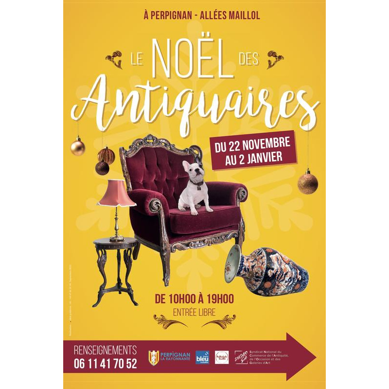 C'est une tradition, retrouvez le “noël des antiquaires”, ses vieux objets et ses antiquités au départ des allées maillol, une longue foire en extérieur organisée par les antiquaires et brocanteurs en pays catalan / sncao-ga (syndicat national du commerce de l'antiquité, de l'occasion et des galeries d'art).