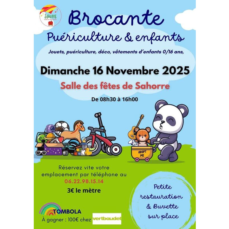 Brocante enfants : jouets, puériculture, déco et vêtements enfants (0 à 16 ans).