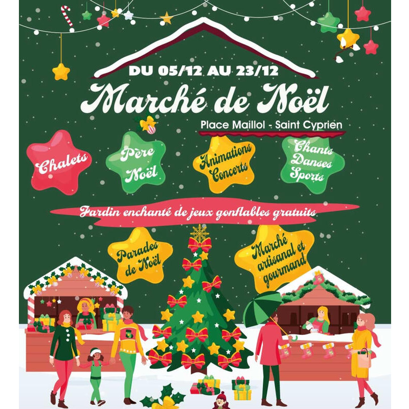 Du vendredi 5 au mardi 23 décembre le marché de noël s’installe à saint-cyprien. Préparez-vous à vivre une ambiance féérique avec des animations pour petits et grands !