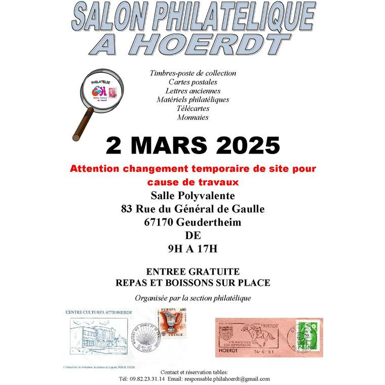 Ce salon expo-bourse permet de découvrir la philatélie, de trouver des raretés de collection ou de partager sur cette passion. Timbres de poste de collection, cartes postales, lettres anciennes, matériels philatéliques, télécartes et monnaies diverses pourront être observés par les visiteurs, pour le plaisir des yeux.