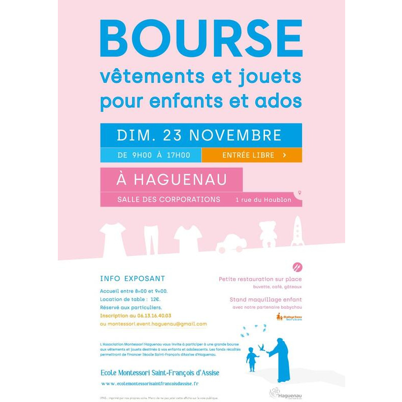 L'école montessori de haguenau propose une bourse aux vêtements et jouets pour enfants et adolescents le 23 novembre 2025 à haguenau.