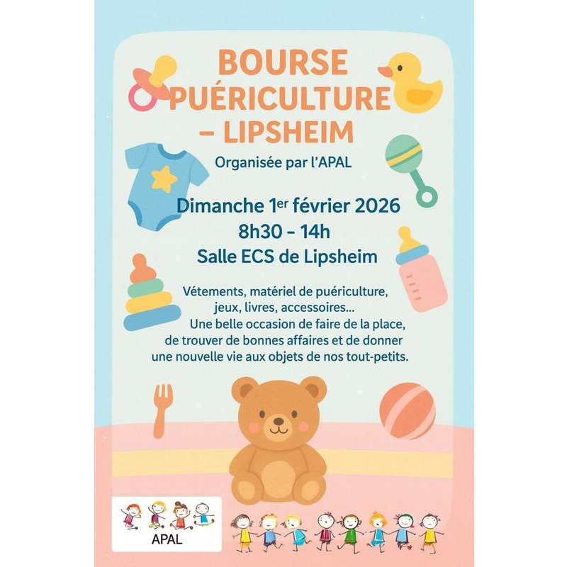 Bouse puériculture, enfance,jouets organisée par l'apal à la salle polyvalente "ecs" de lipsheim, rue de la croix.