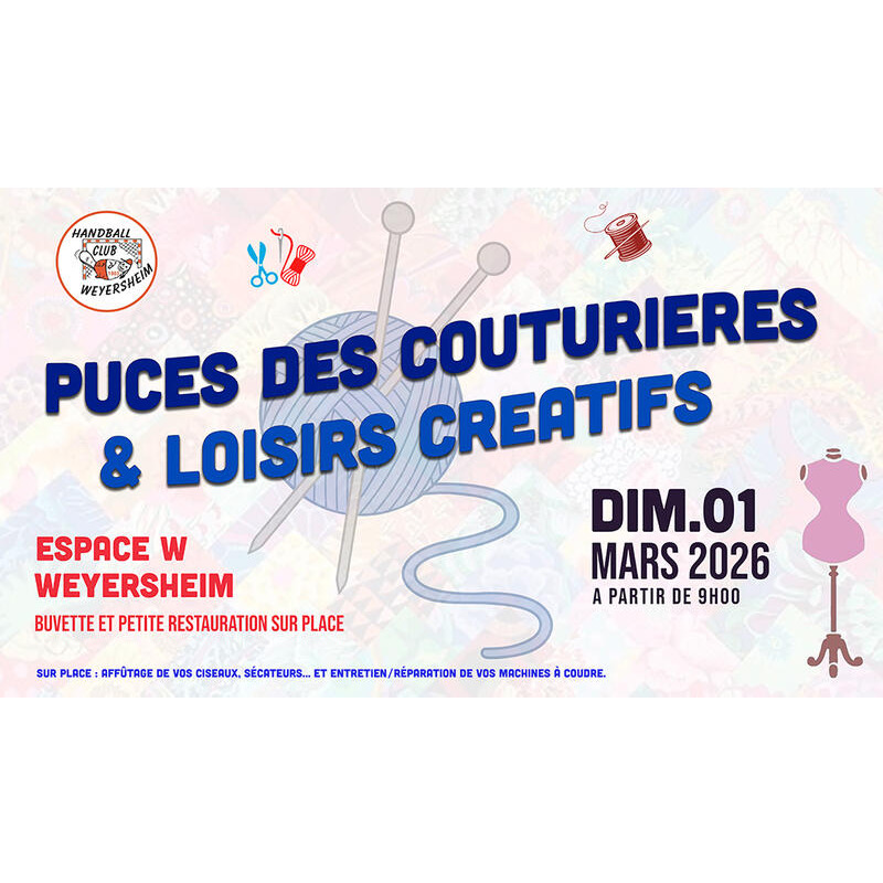 Le handball club de weyersheim organise sa 11ème édition des puces des couturières et loisirs créatifs le dimanche 1er mars 2026 de 9h à 16h à l’espace w rue des prés à weyersheim.