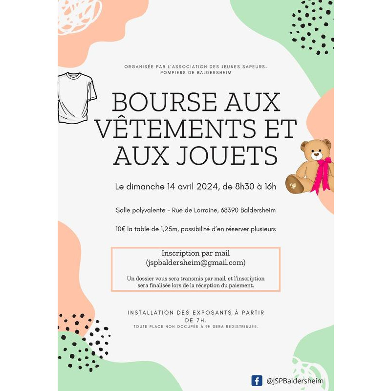 Bourse aux vêtements et jouets organisée par les jeunes sapeurs pompiers de baldersheim.
