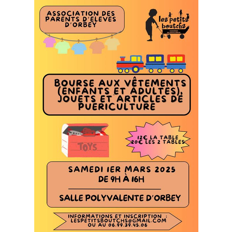 Bourse aux vêtements (enfants et adultes), jouets et articles de puériculture organisée par l'association les petits boutchs.