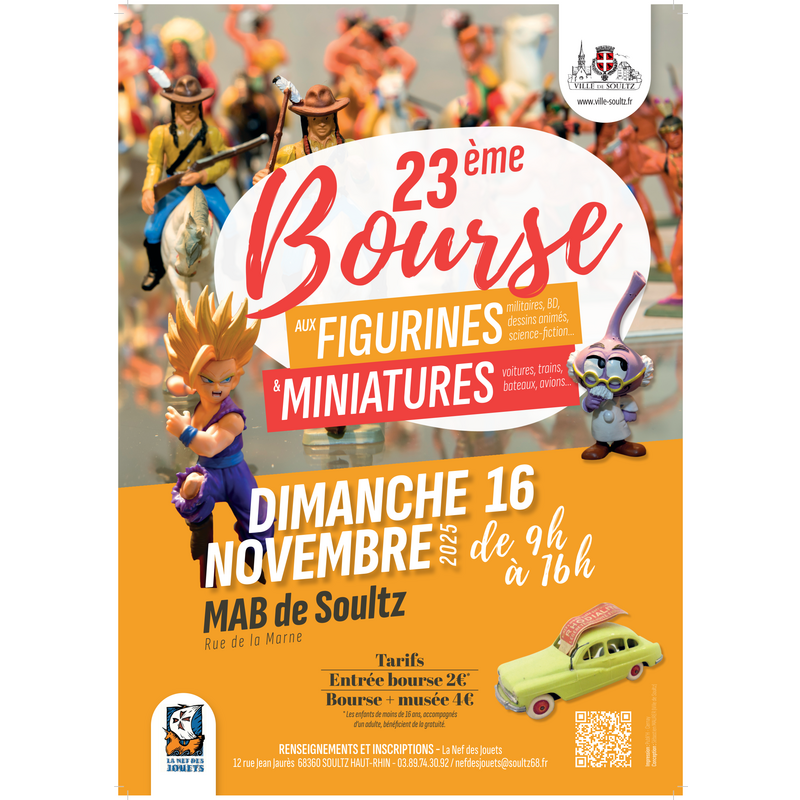 La bourse aux figurines (militaires, civiles, science-fiction) et aux miniatures (voitures, trains, bateaux, avions) à soultz le 16 novembre 2025.