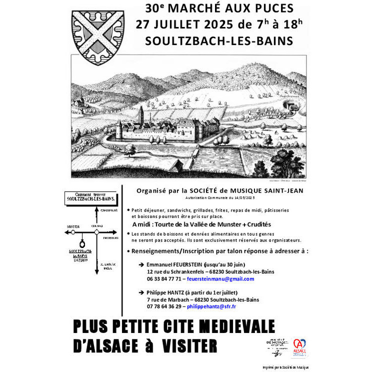 L’harmonie saint jean de soultzbach-les-bains est heureuse d’organiser son 28ème marché aux puces ouvert aux particuliers, le dimanche 30 juillet 2023.