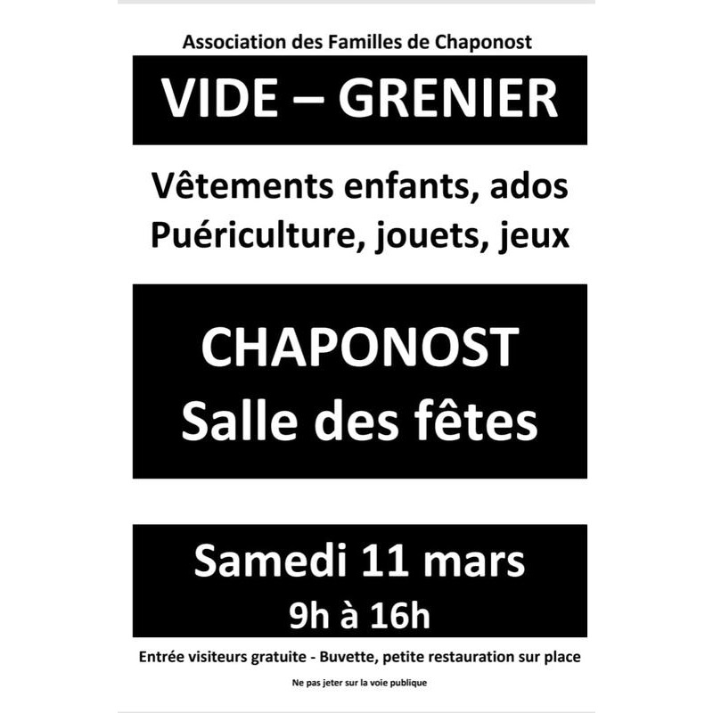 L'association des familles organise un vide grenier spécial enfance.