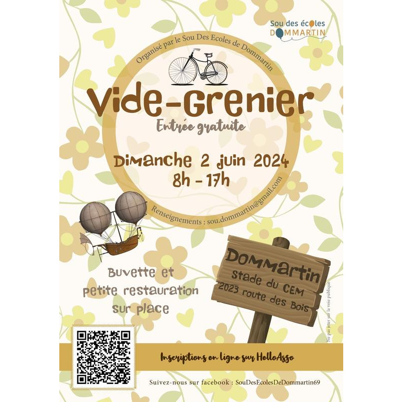 Le sou des écoles de dommartin organise son traditionnel vide-grenier le dimanche 2 juin 2024.