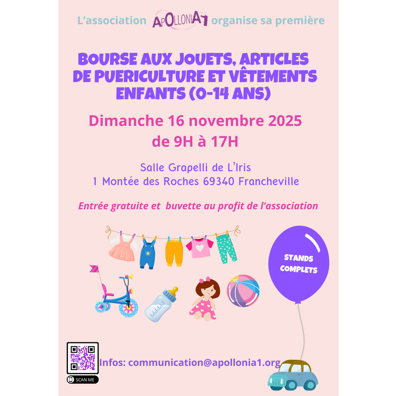 Bourse aux jouets, articles de puériculture et vêtements enfants 0-14 ans au profit de l'association apollonia1