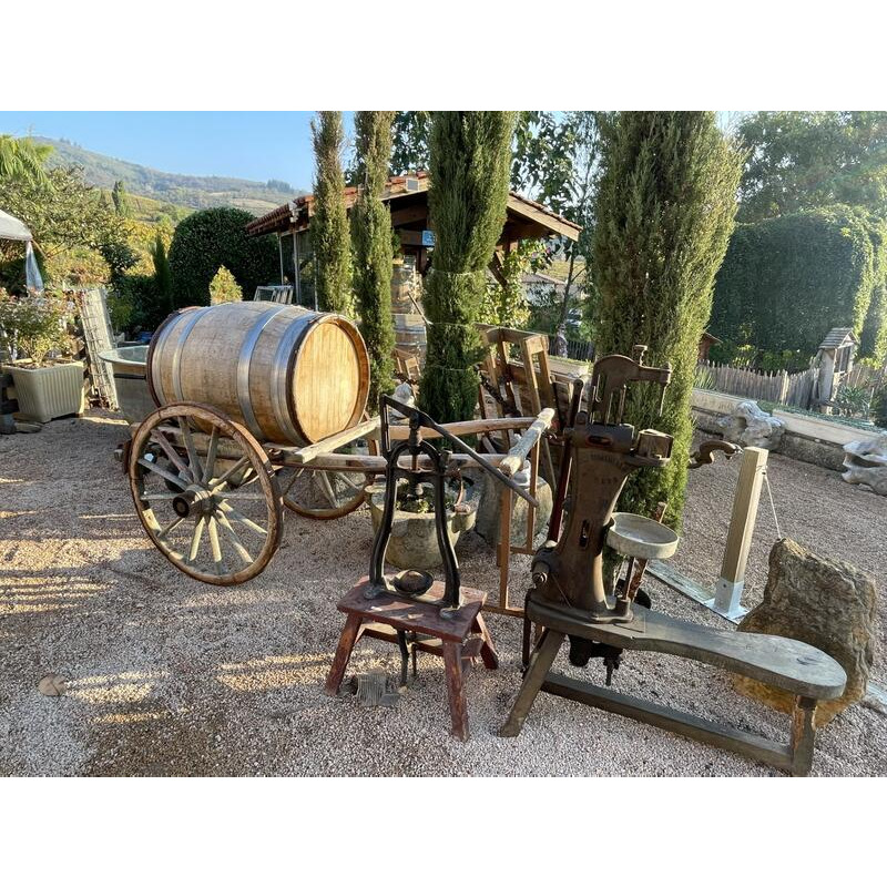 4cv, golf 7r 300 cv 4 roues motrices, outils cave, balances, charrettes, bennes et gerles bois, petits foudres, tracteur tondeuse avec remorque, tonneaux, pressoirs, horloges, juke box, meule, enclume, objets divers...