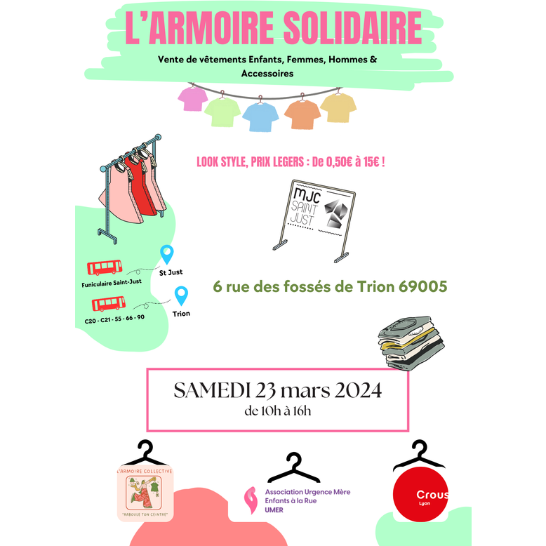 Vente solidaire en partenariat avec la mjc st just - association umer (urgence mère-enfants à la rue) - ecole sup de com - crous résidence allix