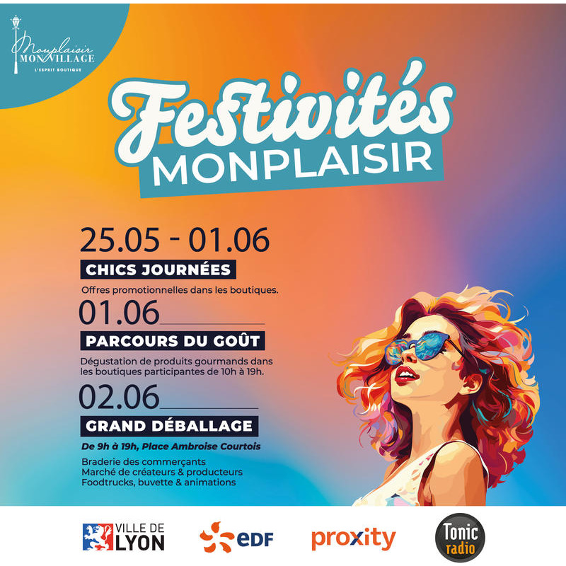 Monplaisir festivités est le rendez-vous incontournable des shopping addicts permettant de bénéficier de produits neufs à petits prix dans divers secteurs d’activité comme le prêt à porter, la maroquinerie, les chaussures et les loisirs. Les visiteurs pourront également (re)découvrir des créations d’artisans de la région, du collectif « les pépites du savoir-faire rhônalpin » mais aussi déguster des produits locaux.