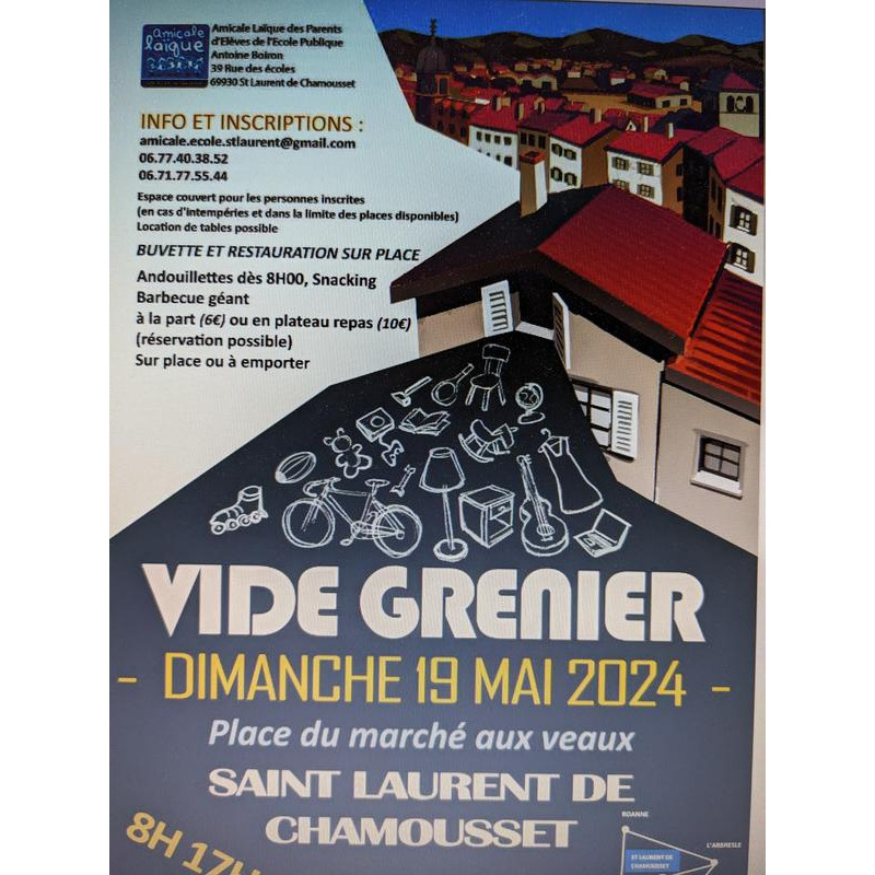 Vide-greniers organisé par l’amicale laïque antoine boiron, association des parents d’élèves de l’école publique de saint laurent de chamousset.