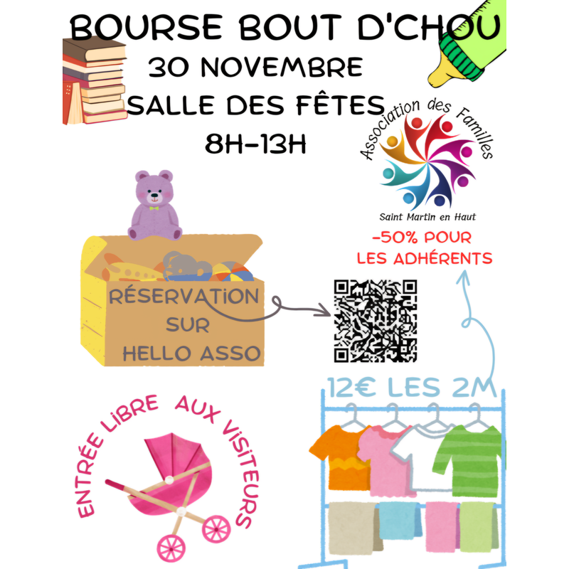 Bourse aux jouets, vêtements et accessoires de puériculture.