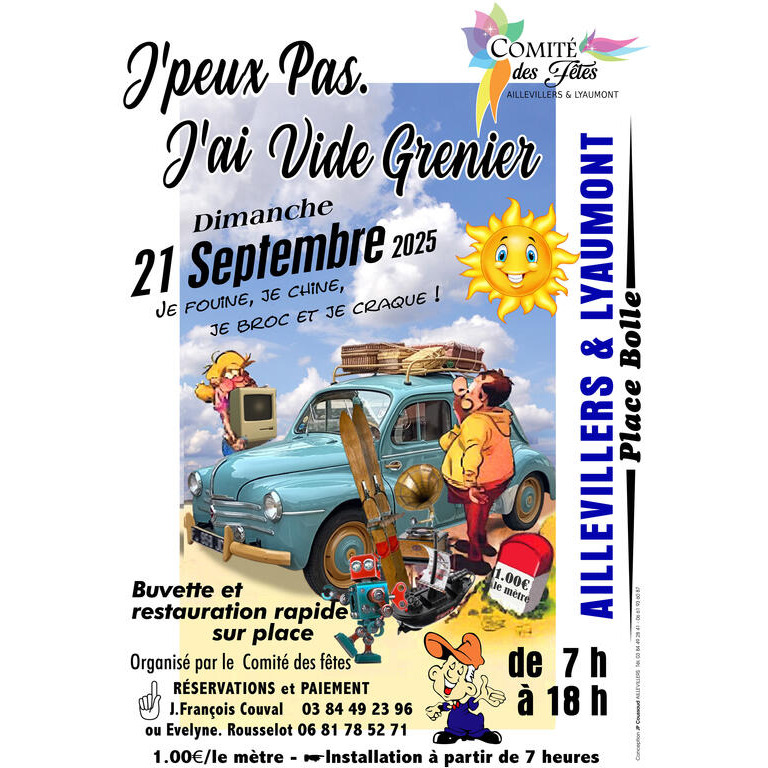 Vide grenier sur la place bolle à aillevillers avec buvette et restauration rapide