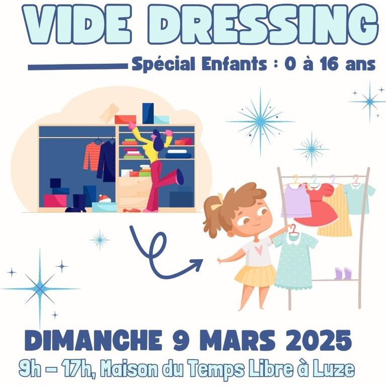 Vide dressing concernant exclusivement les vêtements de 0 à 16 ans ainsi que les chaussures et le linge de maison enfants.