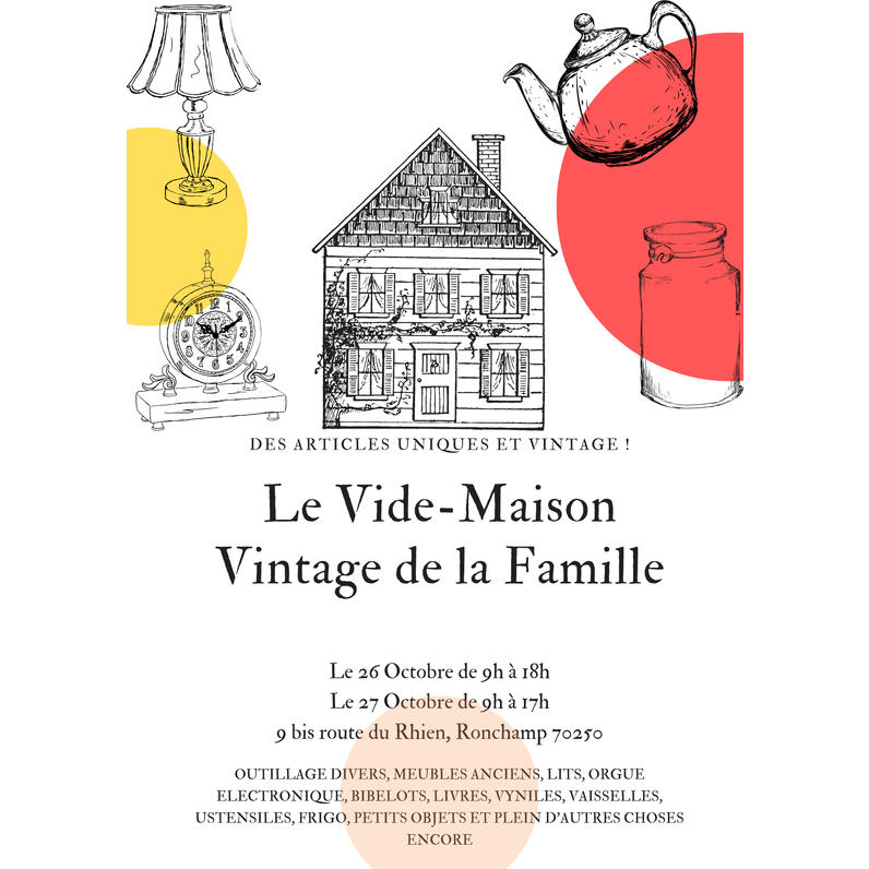 outillage divers (dont tondeuse-débroussailleuse), meubles anciens, canapé + fauteuil, lits/literies, orgue électronique, matériel hi-fi, appareils photos, bibelots, livres, vinyles, verrerie/vaisselle (plusieurs services), ustensiles de cuisson, gros électroménager (réfrigérateurs), petit électroménager (batteurs, mixeurs...), petits objets, et plein d'autres choses encore !!