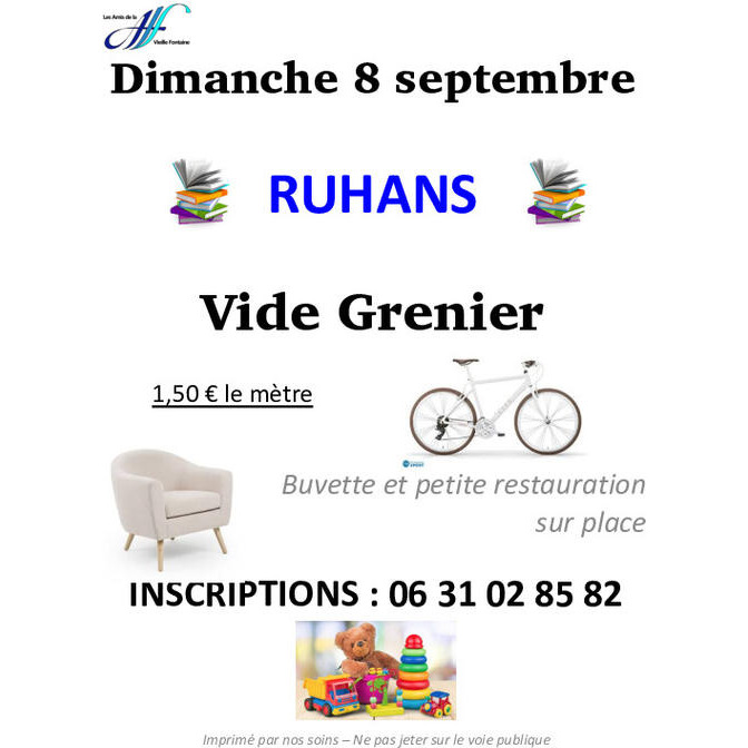 L' association les amis de la vieille fontaine organise le 8 septembre 2024 son vide grenier annuel.