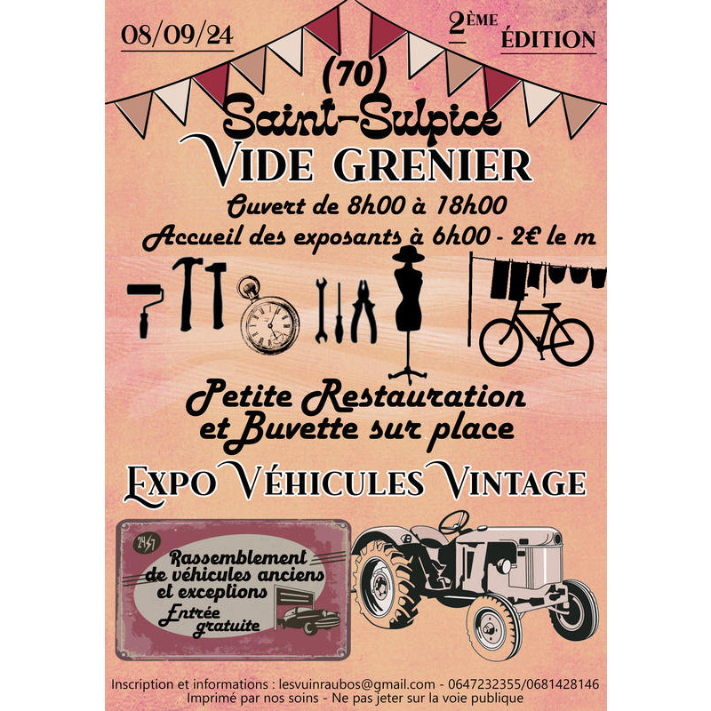 Vide grenier accompagné d'une exposition de véhicules anciens. Entrée gratuite