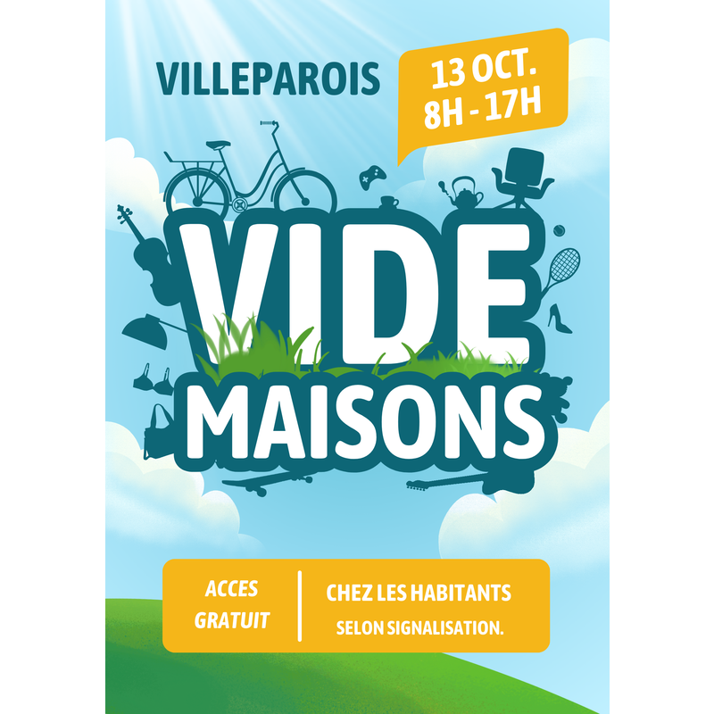 Une vingtaine d'habitants de villeparois procèdent à un grand déballage le 13 octobre dans tout le village. Un plan des maisons ouvertes sera à disposition au niveau de la chapelle.