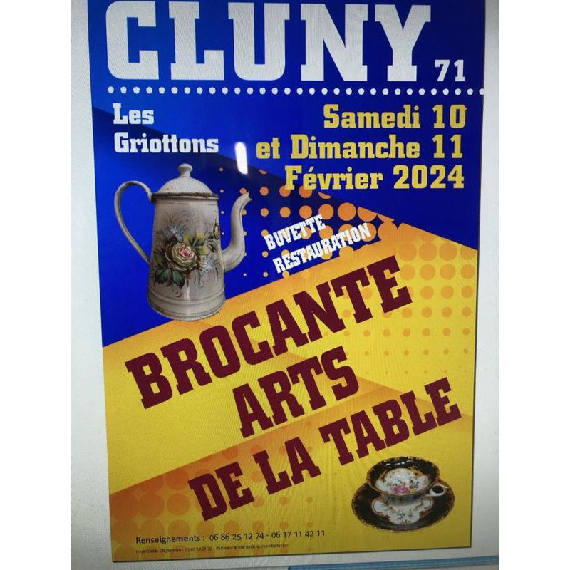 Dans cette belle brocante, vous trouverez des objets anciens de qualité liés aux arts de la table (vaisselles en porcelaine, verres en cristal, couverts, argenterie, nappes-serviettes, décorations de la table, etc... ), à la pratique de la cuisine (batteries de cuisine et divers ustensiles), à l'ameublement des cuisines et aux vieux papiers ayant rapport avec la cuisine (documentations, livres, affiches). Aucune copie récente ne pourra être exposée. Dans une présentation soignée, un vaste choix vous sera proposé.
