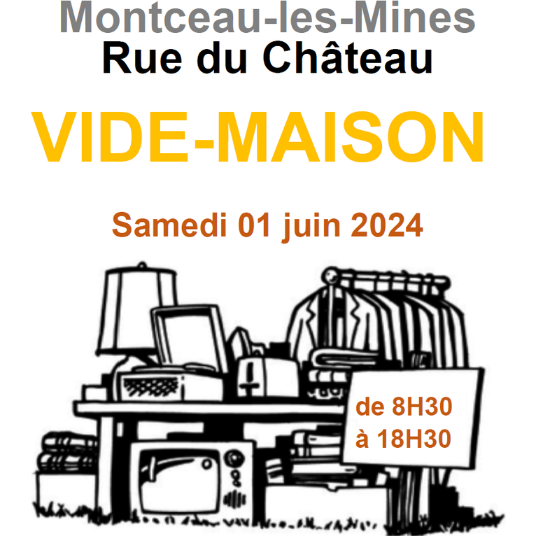 Petits meubles, chiffonnier, armoire, table henri II et chaises cannées, canapé cuir et fauteuil excellents état, comtoise, vaisselle, déco, habits adulte, outillage main quincaillerie et visserie, remorque